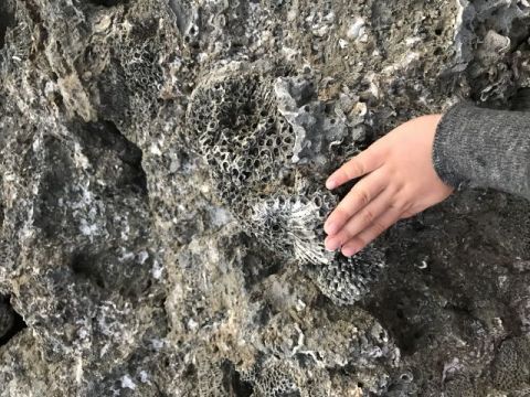 这是垦丁珊瑚礁的特写照,特地拿我的小手做了比例尺。漂亮的珊瑚礁可曾有过雪白的颜色?