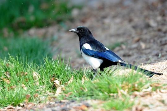 喜鹊(学名:Pica pica)是鸟纲鸦科的一种鸟类。共有10个亚种。体长40~50厘米,雌雄羽色相似,头、颈、背至尾均为黑色,并自前往后分别呈现紫色、绿蓝色、绿色等光泽,双翅黑色而在翼肩有一大形白斑,尾远较翅长,呈楔形,嘴、腿、脚纯黑色,腹面以胸为界,前黑后白。