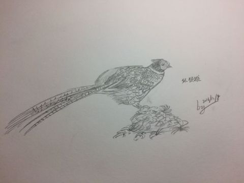 手绘环颈雉