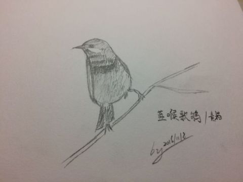 蓝喉歌鸲素描,献丑了