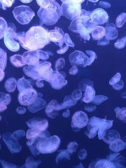 水母是水生环境中重要的浮游生物,属于刺丝胞动物钵水母纲。水母是一种非常漂亮的水生动物。它的身体外形就像一把透明伞,水母身体的主要成分是水,并由内外两胚层所组成,两层间有一个很厚的中胶层,不但透明,而且有漂浮作用。它们在运动时,利用体内喷水反射前进,远远望去,就像一顶顶圆伞在水中迅速漂游。无论是热带的水域﹑温带的水域﹑浅水区﹑约百米深的海洋,甚至是淡水区都有它们的影踪。