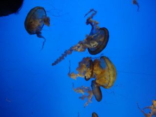 彩色水母又称端棍水母,主要分布在太平洋印度洋以及澳洲东北部,以小型浮游生物为食。它们色彩变化多样,从白色、粉色、蓝色到深紫色的都有,越近海水表面,色彩越深。