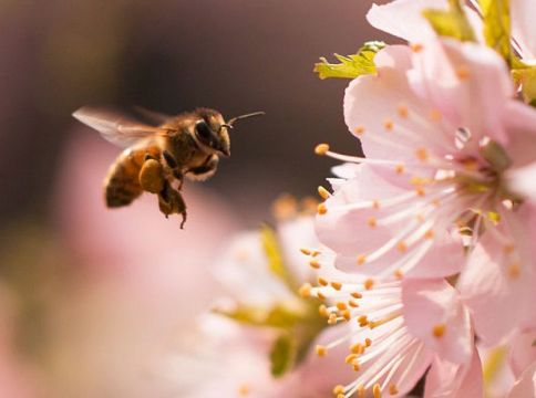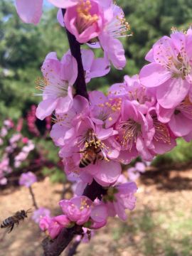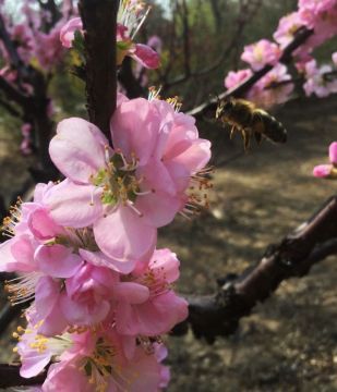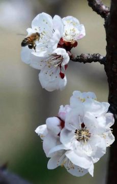可爱的小蜜蜂舞动金色的翅膀像个天使一样,在花团锦簇的枝头上不知疲倦地忙碌着,采摘着香甜的花蜜。